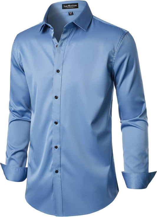 LucMatton Men's Dress Shirt Formal Stretch Wrinkle-Free Long Sleeve Slim Fit Button Down Shirts for Wedding Party