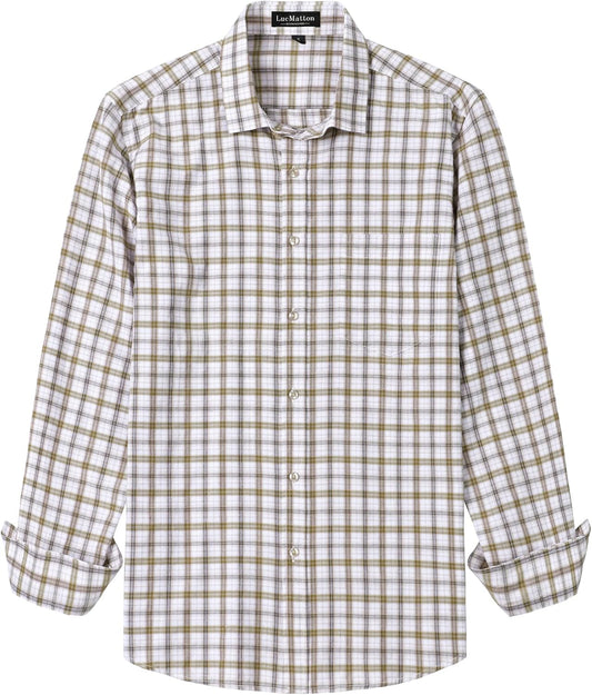 LucMatton Men's Gingham Dress Shirt Casual Business Long Sleeve Button Down Shirts with Pocket